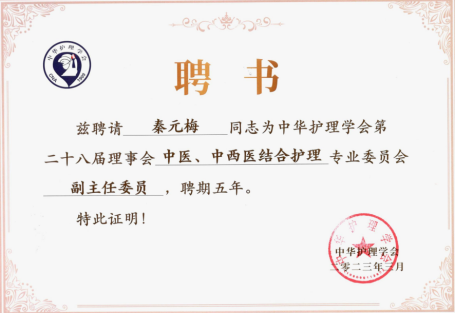 中华护理学会中医、中西医结合护理专业委员会在中华护理学会指导下围绕学术交流、科普宣传、标准指南制定、社会服务、继续教育等方面持续开展工作,以持续提升中医医疗机构中医护理服务能力为目标,不断挖掘、整理中医护理在疾病治疗、慢病管理、康复保健、健康养老等方面的优势,通过发挥学术引领作用,带动国内中医护理学科发展。此次秦元梅教授连任当选为中华护理学会中医中医西结合护理专委会副主任委员,再次彰显我院在国内中医护理领域的学术地位和学术影响;下一步,我院继续开拓创新,为中医护理事业高质量发展培养更多优秀护理人才,为健康中国建设做出更多贡献。