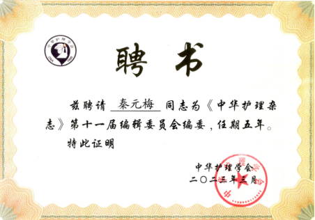 中华护理杂志编辑委员会聘书