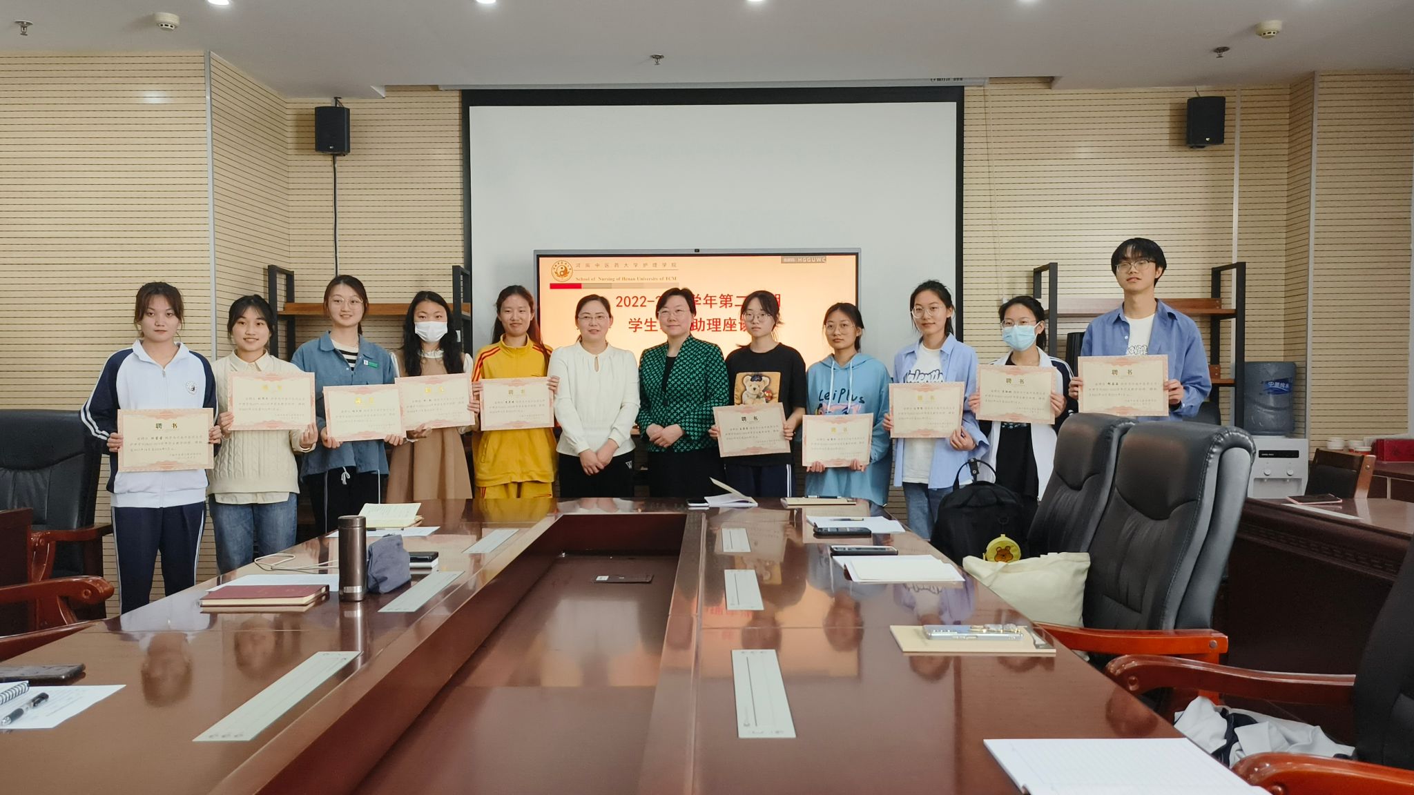 座谈会中,还为新遴选的学生教学助理颁发了聘书。