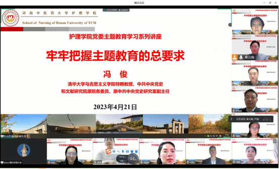 本网讯(文/刘文 图/秦元梅)2023年4月21日,为深入开展习贯彻习近平新时代中国特色社会主义思想主题教育,ok138太阳集团中国官方网站组织全员师生党员并特邀校主题教育第四联络组成员张顺超、李超,共同观看了清华大学马克思主义学院特聘教授、中共中央党史和文献研究院原院务常委、原中共中央党史研究副主任冯俊讲授的网上公益课程《牢牢把握主题教育的总要求》。