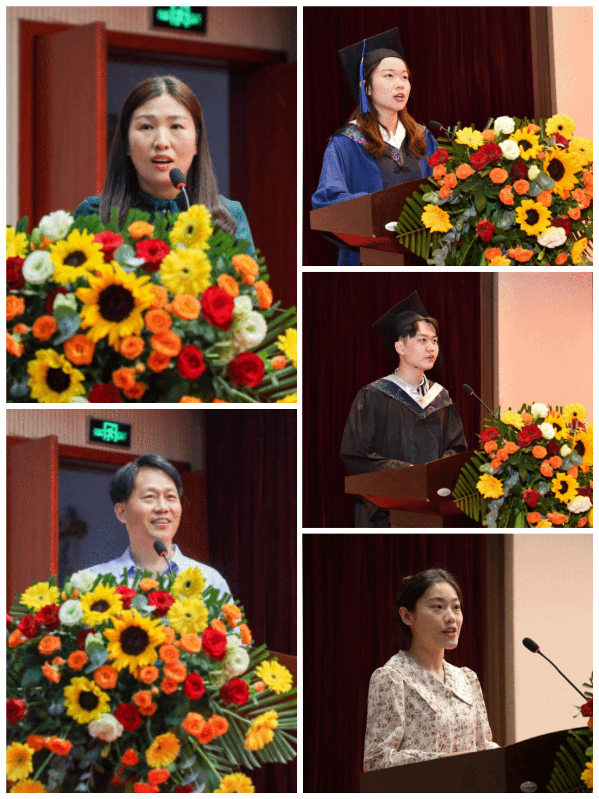 毕业生家长代表吴晓刚在发言中向学院领导和老师表达诚挚的感谢,感谢学院、老师对学生的关爱与培养,以及教书育人过程中的辛勤与付出。学院教师代表邹小燕向2023届全体毕业生表达祝贺,希望同学们不忘母校之恩,秉承“厚德博学,承古拓新”的校训,踔厉奋发,笃行不怠!