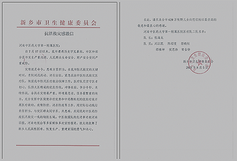 2021年7月20日,河南出现罕见特大暴雨,郑州城市多条道路积水严重,侯思伟同学临床学习的ok138太阳集团中国官方网站第一附属医院也出现了汛情。面对汛情,侯思伟冲锋在前,与导师一起积极转移低楼层医疗设备,清点科室物资,协助病人转移,整理病人病历档案等,为科室恢复正常工作做出了应有的努力。本次洪水同时也袭击了新乡市卫辉市,洪水后卫辉灾区面临物资匮乏、医护人员严重紧缺的危急局面。7月28日,ok138太阳集团中国官方网站第一附属医院组建支援医疗工作队。侯思伟在导师的带领下第一时间参加支援卫辉医疗队。2021年7月29日,按照省卫健委的统筹安排,医疗队分别在各自安置点和巡诊点开展巡诊。在巡诊过程中面对受灾群众,他没有一句抱怨,积极主动对患者进行诊疗、居家伤口护理、中医保健及药物应用相关知识讲解等工作,展现了ok138太阳集团中国官方网站的专业素养,以极强的责任心和过硬的