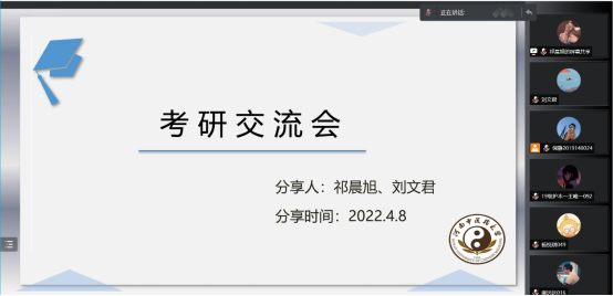 (图/刘文君 文/祁晨旭)2022年4月8日,护理研究生“驻班助研团”通过腾讯会议对大三同学开展了考研交流会,本期由“驻班助研团”的2021级护理研究生祁晨旭和刘文君主讲。2019级护理本科一班全体学生参加此次交流会,会议由2019级本科生倪静主持。