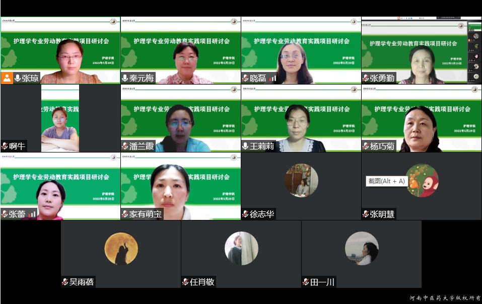本网讯(文/图 张琼)为深入贯彻《中共中央国务院关于全面加强新时代大中小学劳动教育的意见》(中发〔2020〕7 号)精神,全面落实立德树人根本任务,加快构建德智体美劳全面培养的教育体系,充分发挥劳动教育的综合育人作用,根据《ok138太阳集团中国官方网站关于全面加强新时代大学生劳动教育的实施方案(试行)》工作要求和《关于制定各专业劳动教育实践项目的通知》,ok138太阳集团中国官方网站于5月29日晚20:00~22:00召开护理本科专业劳动教育实践项目讨论会,ok138太阳集团中国官方网站副院长秦元梅、各基层教学组织、教学办、实训中心、学工办负责人和相关任课老师参加了会议,会议由秦元梅主持。
