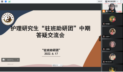 (图/张明慧 文/焦倩)2022年6月17日,ok138太阳集团中国官方网站通过腾讯会议举办了“中期答疑交流会”,本期由“驻班助研团”成员张明慧、刘文君、王笑露和2022级护理研究生王宏宇主讲,主管副院长刘玲霞、研究生辅导员吕素、本科辅导员杨飞、2019级护理学本科生参加此次交流会,会议由2021级护理研究生焦倩主持。