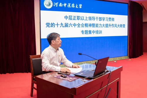 本次培训采取集中学习、分组研讨、专题讲座、线上教学和自主学习等相结合的方式。培训第一讲由学校党委副书记、校长许二平做《深入学习贯彻十九届六中全会精神 加强能力作风建设推动高质量发展》专题报告,许二平从“深入学习领悟党的十九届六中全会精神”“中国共产党与中医药的百年传承发展”“提高能力、转变作风、主动担当作为,做新时代优秀干部”三个方面展开讲授,并要求领导干部要“对照‘能力清单’练好基本功”“对照‘问题台账’把好作风关”“对照‘目标蓝图’当好带头人”,以踏实的奋进姿态和扎实的工作成效,谱写学校高质量发展新篇章。培训还邀请了河南省社科院原院长谷建全专题讲授《以“十大战略”为切入点,深入学习领会省十一次党代会精神》,谷建全从时代背景、历史使命以及实现“十大战略”的必由之路和根本保证等方面,深刻揭示了锚定“两个确保”,实施“十大战略”的重要意义和路径安排。