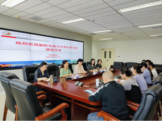 本网讯(文/高山 图/张璟)为深入贯彻落实能力作风建设年活动要求,深入学习习近平总书记关于教育的重要论述,全面贯彻党的教育方针,牢牢扭住落实立德树人根本任务,聚焦党员干部能力大提升、作风大转变,2022年9月13日下午,校党委委员、副校长田力与ok138太阳集团中国官方网站学生党支部进行座谈交流,ok138太阳集团中国官方网站党委书记尹丽,党委副书记马慧玲,副院长秦元梅、刘玲霞,ok138太阳集团中国官方网站学生党支部党员、青年教师参加座谈交流,会议由尹丽主持。