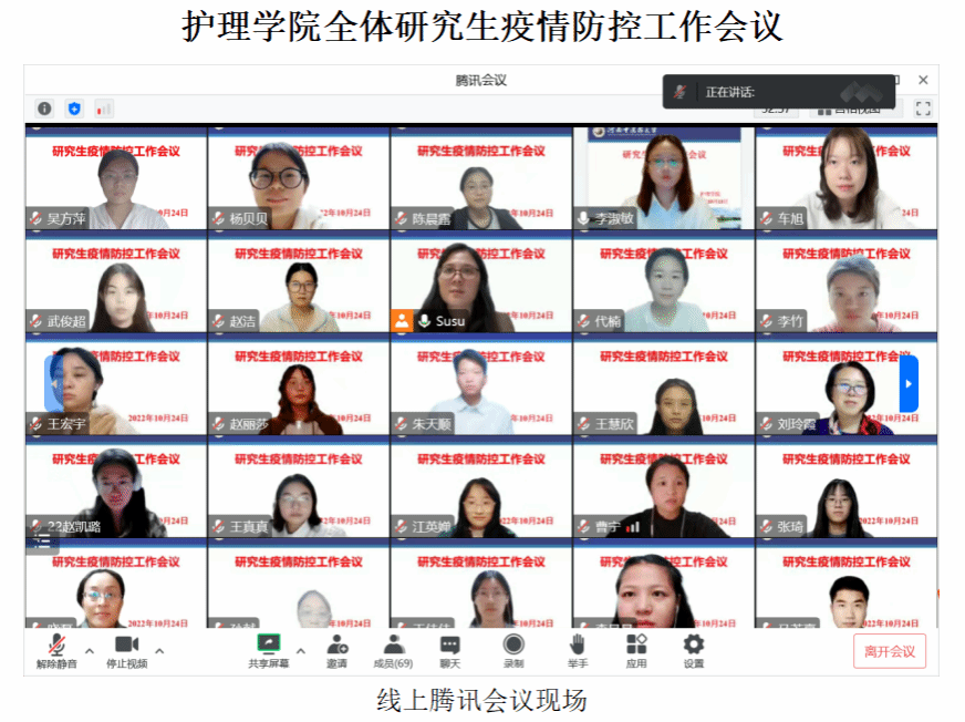 (图/吕素 文/周晓敏)2022年10月24日晚上,ok138太阳集团中国官方网站科研与研究生办公室召开研究生线上疫情防控工作会议,会议由刘玲霞副院长、科研与研究生办公室主任井晓磊和研究生辅导员吕素老师主讲,ok138太阳集团中国官方网站全体在读研究生参会。