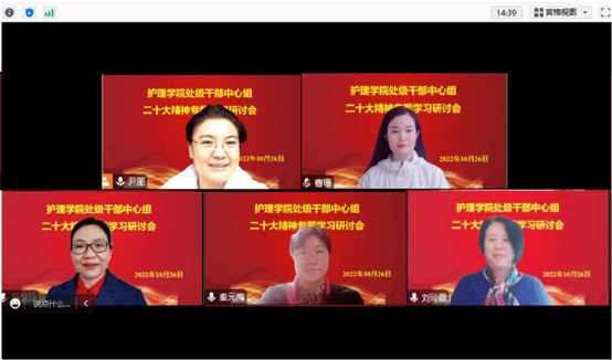 专题活动深入学。10月19日,学院党委书记尹丽对2019级408名在郑实习生进行了线上“党的二十大报告内容核心要点解读”,围绕报告十五个方面的重点内容给予了详细讲解,帮助实习生更好地学习、理解党的二十大精神,从中汲取奋斗力量。作为2020级护理本科一班班主任,尹丽于10月25日组织召开了“学习党的二十大精神”线上主题班会,向同学们讲解了二十大报告提出的新观点,新论断,新思想,要求同学们认真学习报告原文,并勉励大家踔厉奋发、勇毅前行,为投身建设现代化强国做出贡献。
