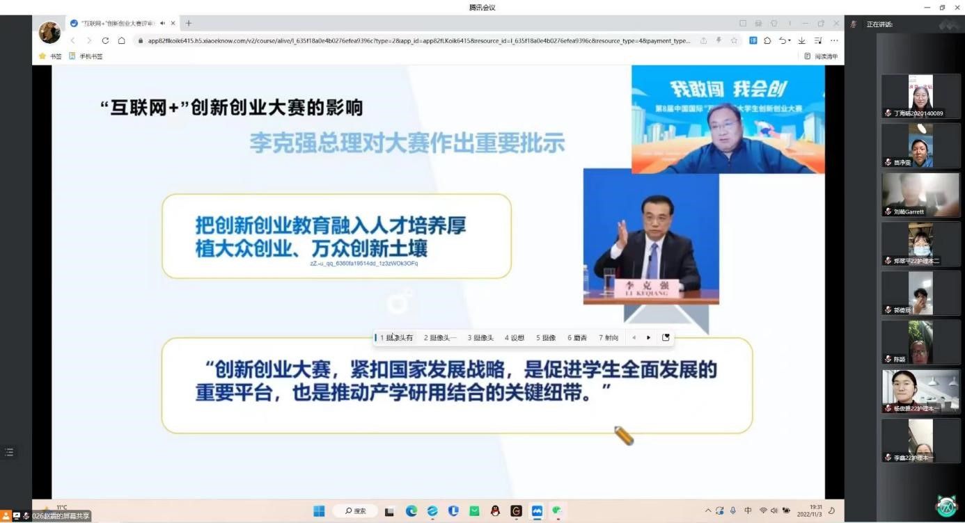 (图/胡亚静 文/赵震)为提高同学们的创新精神、创业意识和创新创业能力,切实推进2023年“互联网+”大学生创新创业大赛工作高质量开展,2022年11月3日晚,ok138太阳集团中国官方网站组织同学们观看河南省教育厅主办的“互联网+”大学生创新创业大赛专题培训讲座。本次培训采用集体观看与自行观看相结合的方式进行学习。