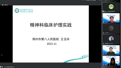 最后,秦元梅表示,因为疫情防控要求及精神专科医院管理的特殊性,本学期采用线上讲座形式进行课程见习,帮学生更深了解精神专科医院管理特征及精神障碍患者的特殊护理要点,在后续的教学过程中,ok138太阳集团中国官方网站将加强与郑州市第八人民医院的联系,在课程见习、实习及科研等方面进行更深入的合作交流。